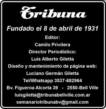 Director: Luis A. Giletta - Bv. Figueroa Alcorta 39 - Tel/Fax: (3537) 482964 / 416789 - E-mail: luisgiletta@tribunabellville.com.ar - (C.P. 2550) Bell Ville